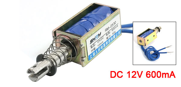 Product Name DC Solenoid Electromagnet Model FM-0530 Rated Voltage & Current DC 12V 600mA Action Form Push Pull Type Force 40g Stroke 5.5mm/0.22" Route 10mm/0.4" Body Size 30 x 16 x 13mm/1.2" x 0.6" x 0.5"(L*W*H) Cable Length 20cm/7.8" Material Metal, Electronic Parts Weight 32g Package Content 1 x DC Solenoid Electromagnet - Reviews