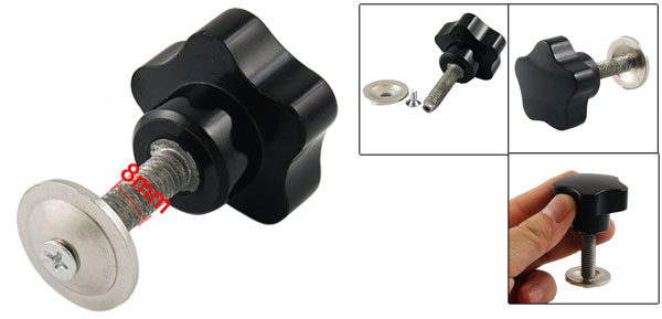 Product Name Star Knob Type Screw On Head Diameter 40mm / 1.57" Thread Length 30mm/ 1.18" Thread Diameter 8mm/ 0.31" Total Height 55mm/ 2.16" Material Metal, Plastic Color Silver Tone, Black Weight 47g Package Content 1 x Star Knob - Reviews