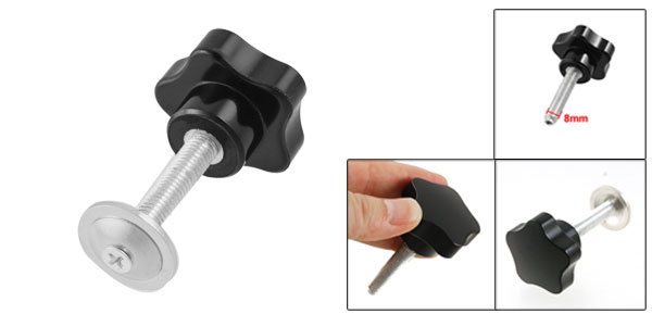 Product Name Star Knob Type Screw On Head Diameter 40mm/ 1.57" Thread Diameter 8mm/ 0.31" Thread Length 40mm/ 1.57" Total Height 62mm/ 2.44" Material Metal, Plastic Color Silver Tone, Black Weight 41g Package Content 1 x Star Knob - Reviews