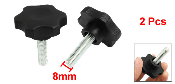 Product Name Clamping Knob Type Screw On Head Diameter 40mm / 1.57" Thread Length 30mm / 1.2" Thread Diameter 8mm / 0.31" Total Height 47mm / 1.85" Material Metal, Plastic Color Silver Tone, Black Weight 52g Package Content 2 x Clamping Knobs - Reviews