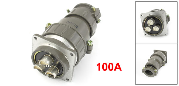 Product Name Aviation Connector Plug w Cover Model P40K1Q Rated Current 100A Withstand Voltage AC 500V Insulation Resistence >1500 mOhm Contact Head Diameter 40mm / 1.6" Pin Quantity 3-Pin Contacts Pin Diameter 10mm/0.4" Thread Dia 44mm/1.7" Panel Diameter 48 x 48 x 3mm / 1.9" x 1.9" x 0.12"(L*W*T) Fixing Hole Dia 3mm / 0.12" Fixing Hole Cneter Distance 40 x 40mm/1.6" x 1.6"(L*W) Total Size 102 x 50mm/ 4" x 2"(L*Max.D) Material Metal,Plastic Color Gray Weight 231g Package 1 x Aviation Connector Plug w Cover