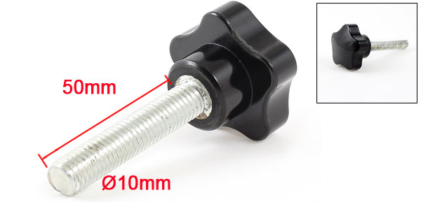 40mm Star Head Dia 10 x 50mm Male Thread Screw On Type Clamping Knob Black