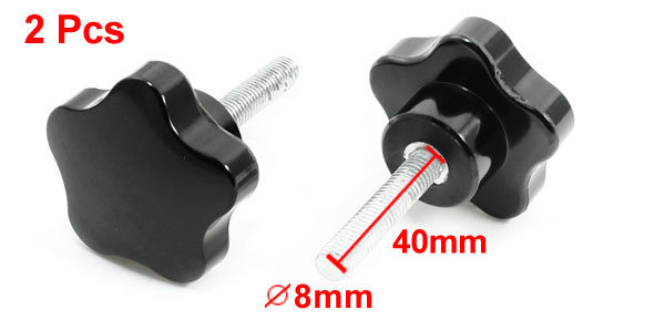40mm x 8mm Thread Screw On Type Five Pointed Star Knob Handle 2Pcs
