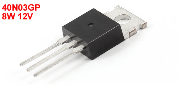 Product Name Silicon Transistor Model No. 40N03GP Mounted Type Through Hole Repetitive Peak Off-state Voltage 12V Dissipation Power 8W Mounting Hole Diameter 3.1mm / 0.12" Pin Size 14 x 3mm / 0.55" x 0.12" ( L* Pitch) Total Size 29 x 10 x 4mm / 1.14" x 0.39" x 0.15" (L*W*H) Main Material Silicon Main Color Black, Silver Tone Weight 3g Package 1 x Silicon Transistor - Reviews
