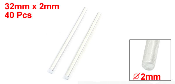 40pcs 32mm Long 2mm Diameter Silver Tone Stainless Steel Round Shafts
