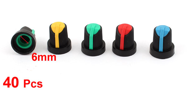 40pcs Assorted Color Face Potentiometer Knob Cap for 6mm Knurled Shaft