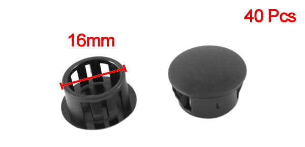 40pcs Black Plastic 16mm Dia Round Locking Hole Plugs Button Covers