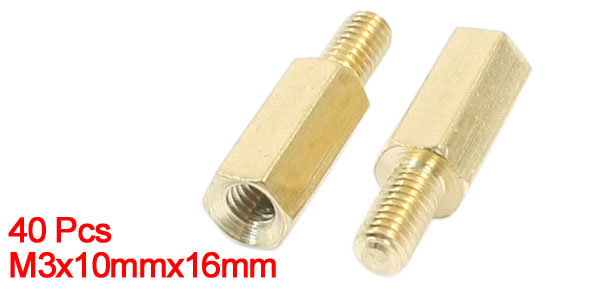 40Pcs Gold Tone Male to Female Thread Standoff Spacers M3 x 10mm x 16mm