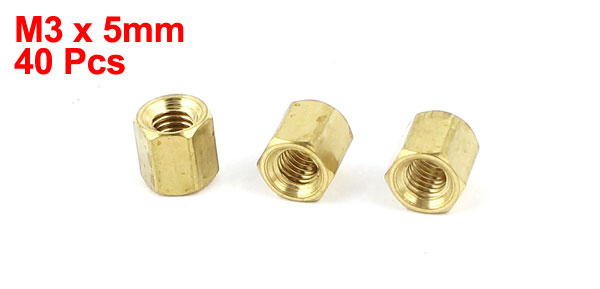 40Pcs M3 Female 5mm Long Hexagonal Standoff Spacer Gold Tone