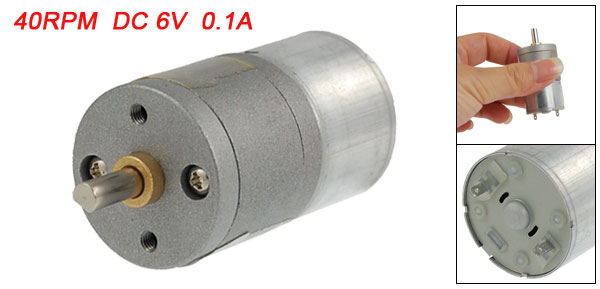 Product Name DC Geared Speed Reduce Motor Rated Voltage DC 6V Rated Current 0.1A Output Speed 40RPM Output Shaft Diameter 4mm / 0.157" Gearbox Part Diameter 25mm / 0.98" Total Length(Approx.) 55mm / 2.2" Material Metal, Electronic Parts Color As Picture Shown Weight 72g Package Content 1 x DC Geared Speed Reduce Motor - Reviews