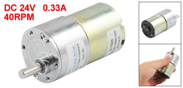 Product Name DC Geared Motor Rated Voltage DC 24V Rated Current 0.33A Output Speed 40RPM Shaft Diameter 6mm/ 0.23" Gearbox Part Diameter 37mm/ 1.41" Motor Part Diameter 36mm/ 1.45" Total Length(Approx.) 80mm/ 3.1" Material Metal, Electronic Parts Color As Picture Shown Weight 202g Package Content 1 x DC Geared Motor - Reviews