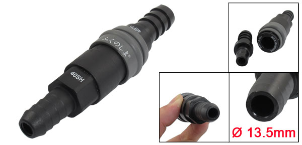 Product Name Quick Coupler Type 40SH + 40PH Fit Pipe Diameter 13.5mm/ 0.53"(Inner) Fluid Applied Air Temperature -35-50C Barometric Pressure(Max) 15kgf/cm2 Overall Size 120 x 29mm/ 4.7" x 1.1" (L*max.D) Color Black, Gray Material Plastic Weight 39g Package 1 x Quick Coupler - Reviews