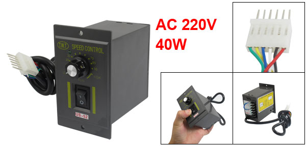 Product Name Motor Speed Controller Model US-52 Material Plastic, Electrical Material Connector Type 6 Pins Rated Value AC 220V, 50HZ Power 40W Size 8.8 x 6 x 10cm/ 3.5" x 2.4" x 3.9" (L*W*H) Cable Length 60cm/23.6'' Color Gray Weight 231g Package Content 1 x Motor Speed Controller - Reviews