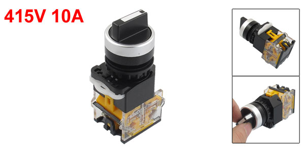 Item Name Push Button Switch Action Type Latching Handle Position 3 Ith 10A Ui 415V Mount Hole Diameter 22mm / 0.87"(7/8") Fit Panel Thickness(Adjustable) Max 8mm / 0.31" Size 68 x 35 x 28mm/ 2.7" x 1.4" x 1.1"(L*W*H) Material Plastic, Metal Net Weight 55g Package Content 1 x Push Button Switch - Reviews