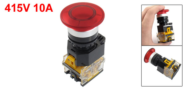415V 10A Momentary Red Mushroom Push Button Switch 22mm 1 NO 1 NC
