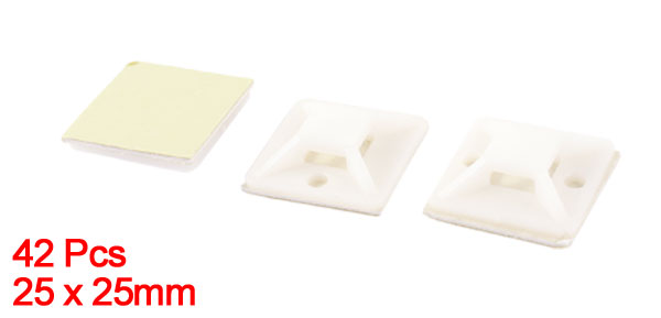 42 Pcs Fixing Wire Tool Self-Adhesive Cable Tie White Base 25mmx25mm