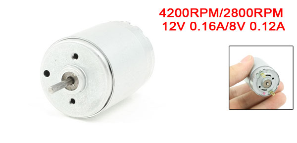 Details4200RPM/2800RPM 12V 0.16A/8V 0.12A High Torque Electric Mini DC Motor  Product Name DC Motor Rated Voltage DC 12V 0.16A DC 8V 0.12A Speed 4200RPM 2800RPM Mounting Screw Hole Diameter 2mm/0.08" Screw Hole Center Distance 16mm/0.6" Knurled Shaft Size 2 x 18mm/ 0.08" x 0.7"(D*L) Body Size 29 x 38mm/ 1.1" x 1.5" (D*H) Main Color Silver Tone Material Metal Net Weight 82g Package 1 x DC Motor