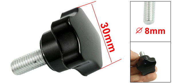 Product Name Star Knob Type Screw On Head Diameter 30mm / 1.2" Thread Length 20mm / 0.8" Thread Diameter 8mm / 0.3" Total Height 42mm / 1.6" Material Metal, Plastic Color Silver Tone, Black Weight 24g Package Content 1 x Clamping Star Knob - Reviews