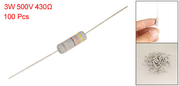 Product Name Metal Oxide Film Resistors Quantity 100±2% Pcs Power Rating 3W Withstand Voltage 500V Resistance 430 Ohm Resistance Tolerance ± 5% Total Length(Approx.) 8cm / 3.1" Color As Picture Show Weight 156g Package Content 100 x Metal Oxide Film Resistors - Reviews