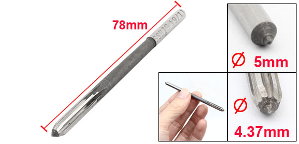 Product Name Straight Shank Chucking Reamer Material HSS Flute Number 6 Cutting Diameter 4.37mm/ 11/64" Cutting Depth 23mm/ 29/32" Shank Diameter 5mm/ 1/5" Total Length 78mm/ 3.1" Color Silver Tone Weight 29g Package Content 1 x Straight Shank Chucking Reamer - Reviews