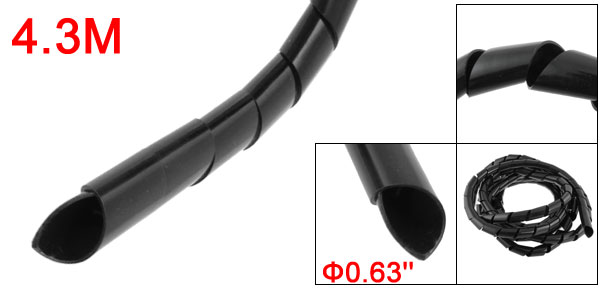 Product Name Spiral Wrap Material Polyethylene Color Black Total Length(Approx.) 4.3M / 14 Ft (169.3'') Outside Diameter 16mm / 0.63'' Thickness 1mm / 0.04'' Net Weight 158g Package Content 1 x Spiral Wrap - Reviews
