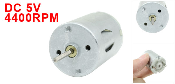 Product Name DC Motor Rated Voltage DC 5V Speed 4400RPM Mounting Screw Hole Diameter 2mm/0.08" Shaft Size 2 x 15mm/ 0.08" x 0.6"(D*L) Body Size 24 x 32mm/ 0.91" x 1.3" (D*H) Main Color Silver Tone Material Metal Net Weight 41g Package 1 x DC Motor - Reviews