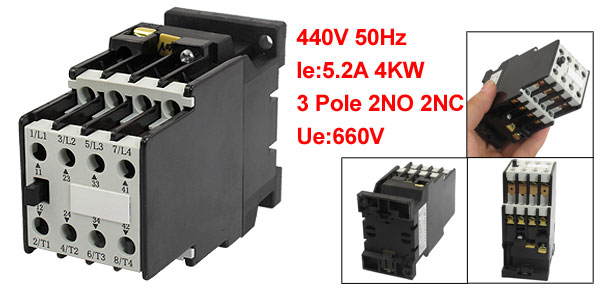 440V 50Hz Coil 5.2A Ie Three Pole 2NO 2NC 660V Ue 4KW AC Contactor