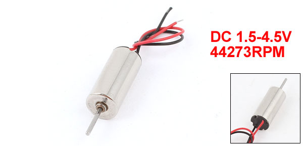 Main Color Silver Tone Brand DMiotech Net Weight 3g Country of Manufacture CHINA Total Length 18mm/0.7" Speed 44273RPM Rated Voltage DC 1.5-4.5V Package Content 1 x DC Coreless Motor Material Metal Shaft Size 6 x 0.8mm(L*D) Wire Length 4cm/1.6" Body Size 12 x 6mm/0.47" x 0.24"(L*D) - Reviews