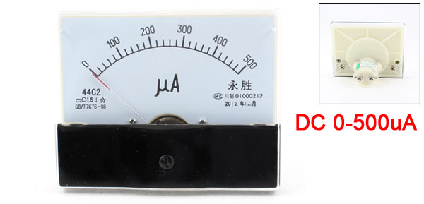 44C2 DC 0-500uA Rectangle Analog Panel Ammeter Gauge