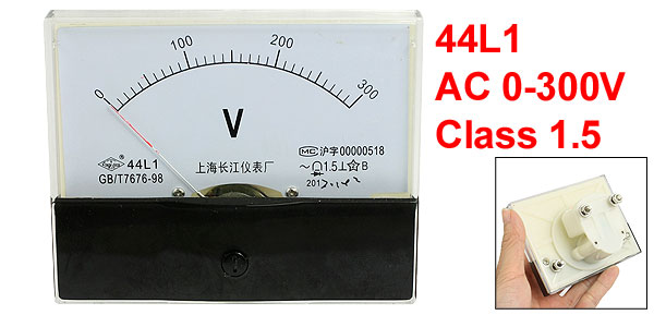 Product Name Analog Voltmeter Model 44L1 Measuring Range AC 0-300V Accuracy Class 1.5 Meter Face Size(Approx) 9.8 x 8cm/ 3.9" x 3.1" (L*W) Thread Size 0.38 x 0.8cm / 0.15" x 0.3" (D*L)