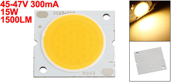 Product Name COB LED Lamp Chip Rated Voltage 45-47V Luminous Flux 1500LM Color Temperature 3000-3500K Power 15W Current 300mA Light Color Warm White Material Aluminum Color Silver Tone, Orange Size 25 x 23mm/ 0.98" x 0.9" (L*W) Luminous Surface 20mm/ 0.79" Weight 3g Package Content 1 x COB LED Lamp Chip - Reviews