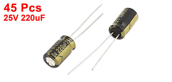 45 Pcs 25V 220uF 105C Radial Lead Electrolytic Capacitor 6mm x 11mm