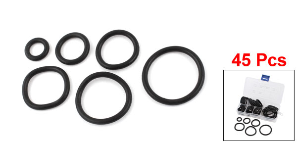 45 Pcs 3.5mm 6 Size Flexible Black Rubber Oil Filter Seal O Rings Gaskets Set