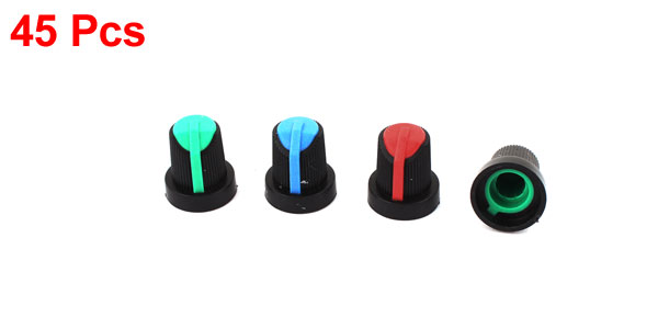 45 Pcs Red Blue Green Potentiometer Rotary Control Knobs Caps for 6mm Dia Shaft