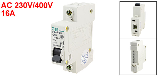 Product Name Miniature Circuit Breaker Model No. FZ47-63 C16 Exrternal Material Plastic, Metal Rated Voltage AC 230V/400V Rated Current 16A Breaking Capacity 4500A Total Size (Approx.) 77 x 18 x 70mm/ 3" x 0.7" x 2.7" (L*W*T) Number of Poles 1 Mount Type DIN Rail Weight 80g Package Content 1 x Miniature Circuit Breaker - Reviews