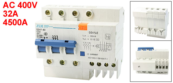 4500A Breaking Capacity DZ47-63 DZ47LE 3P Residual Current Circuit Breaker 32A