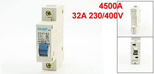 Product Name Circuit Breaker Model DZ47-63 C32 Rated Current 32A Rated Voltage 230/400V Rated Circuit Breaking Capacity 4500A Number of Poles 1 Mount Type 35mm DIN Rail Total Size (Approx.) 77 x 18 x 75mm/ 3.1" x 0.7" x 3" (L*W*H) Material Plastic, Electric Components Weight 76g Package Content 1 x Circuit Breaker - Reviews