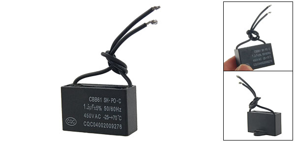 Product Name Motor Capacitor Housing Material Plastic Dielectric Material Metalized Polypropylene Model CBB61 Capacitance 1.5uF Tolerance 5% Rated Voltage 450VAC Frequency 50/60Hz Body Size 3.5 x 2.2 x 1.3cm / 1.38" x 0.87" x 0.51" (L * W * T) Wire Length(Approx.) 10cm / 3.9" Color As Picture Shown Weight 13g Package Content 1 x Motor Capacitor - Reviews