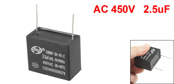 Product Name Motor Capacitor Housing Material Plastic Dielectric Material Polypropylene Film Model CBB61 Capacitance 2.5uF Tolerance 5% Rated Voltage 450V AC Frequency 50/60Hz Lead Spacing(Approx.) 3.2cm/1.2" Lead Length 2.5cm/1" Overall Size 3.8 x 3 x 2cm/1.5"x 1.2"x 0.8"(L*W*H) Color Black Weight 27g Package Content 1 x Motor Capacitor - Reviews