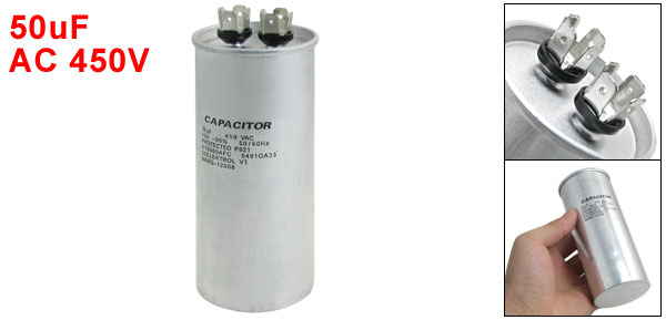 Product Name Motor Capacitor Type Aluminum Electrolytic Model CBB65 Capacitance 50uF Tolerance 6% Rated Voltage AC 450V Frequency 50/60Hz Body Dimension 5 x 12cm/ 1.96" x 4.7" (D * H) Color Sliver Tone Net Weight 191g Package Content 1 x Motor Capacitor - Reviews