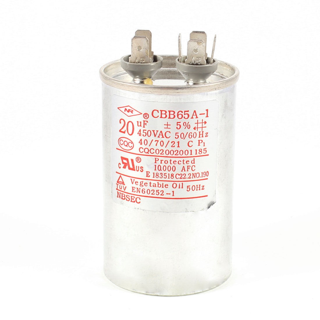 Product Name Motor Capacitor Model CBB65A-1 Material Polypropylene Film Capacitance 20uF Rated Voltage AC 450V Tolerance +/-5% Frequency 50/ 60Hz Operating Temperature 40/70/21 Body Size 80 x 50mm/ 3.1" x 2"(H*D) Color Silver Tone Weight 209g Package Content 1 x Motor Capacitor - Reviews