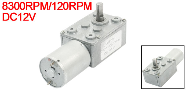 Product Name DC Worm Gear Motor Model JSX69-370 Rated Voltage DC 12V Motor No-load Speed 8300RPM Gear Box No-load Speed 120RPM Reduction Ratio 8300RPM/120RPM(415/6) Pin Number 2 Shaft Diameter 4.5mm/1.4", 6mm/0.24" Shaft Length 14mm/0.57" Hole Dia 2.5mm/0.1" Motor Size 31 x 24mm/1.2" x 0.94"(L*D) Gear Box Size 47 x 32 x 26mm/1.5" x 1.3" x 1:(L*W*H) Total Length 78mm/3" Material Metal Weight 141g Package 1 x DC Worm Gear Motor - Reviews