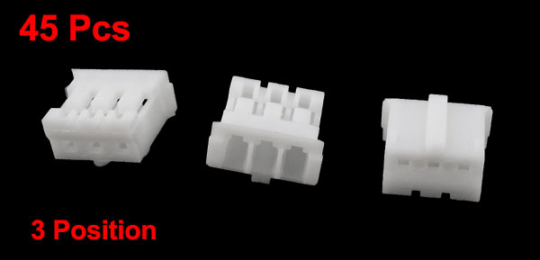 Details45pcs 2.0mm Pitch 3 Position 3P PH Female Connector Housing White  Product Name PH Connector Housing Position Number 3 Pitch 2.0mm Size(Approx.) 7.5 x 6.5 x 4.2mm/0.3" x 0.26" x 0.17"(L*W*T) Color White Metarial Plastic Net Weight 4g Package Content 45 x PH Connector Housing