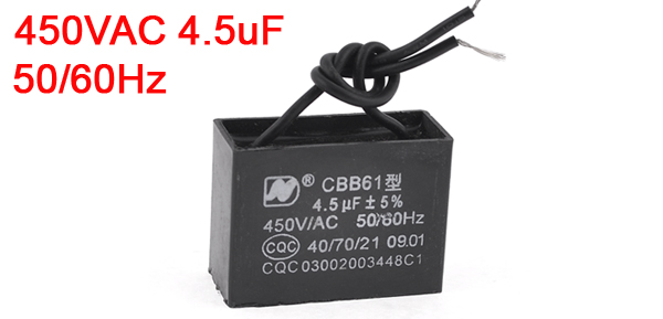 4.5uf MFD 450V AC 50/60Hz 2 Black Wire Electric Fan Capacitor CBB61