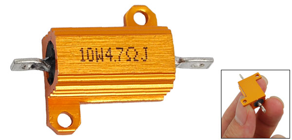 Product Name Aluminum Resistor Resistance Value 4.7 Ohm Power Rating 10W Resistance Tolerance ± 5% (J) Mounted Hole Diameter 0.2cm/ 0.078" Body Size 1.9 x 1cm/ 0.74" x 0.39" (L*D) Total Size 3.2 x 2.1 x 1cm/ 1.2" x 0.82" x 0.39" (L*W*H) Casing Material Aluminum Color Gold Tone Weight 5g Package Content 1 x Aluminum Wire Wound Resistor - Reviews