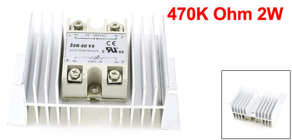 470K Ohm 2W to AC 24-380V 60A Aluminum Heatsink Single Phase Solid State Relay