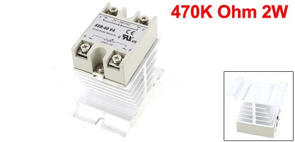 470K Ohm 2W to AC 24-380V 60A Single Phase SSR Solid State Relay w Heat Sink