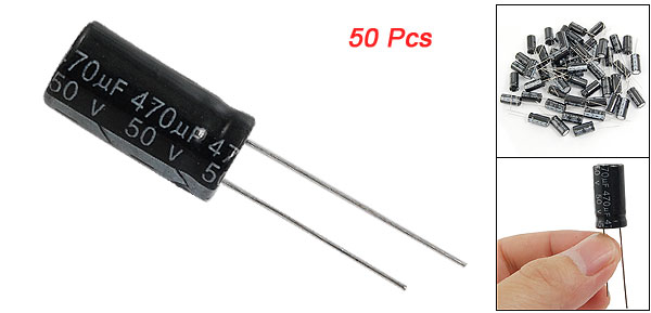 Product Name Aluminum Electrolytic Capacitor Type Radial Lead Maximum Temperature 105°C Voltage 50V Capacitance 470uF Capacitance Tolerance ±20% Size 10 x 20mm / 0.39" x 0.78" (D*L) Lead Spacing 5mm Lead Length 22mm, 26mm External Material Aluminum Weight 105g Color As Picture Shown Package Content 50 Pcs (±2%) x Electrolytic Capacitors - Reviews