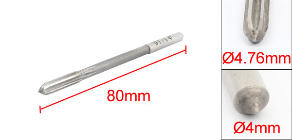 Product Name Straight Shank Chucking Reamer Material HSS Flute Number 6 Cutting Diameter 4.76mm/ 3/16" Cutting Depth 18mm/ 23/32" Shank Diameter 4mm/ 5/32" Total Length 80mm/ 3.1" Color Silver Tone Weight 29g Package Content 1 x Straight Shank Chucking Reamer - Reviews