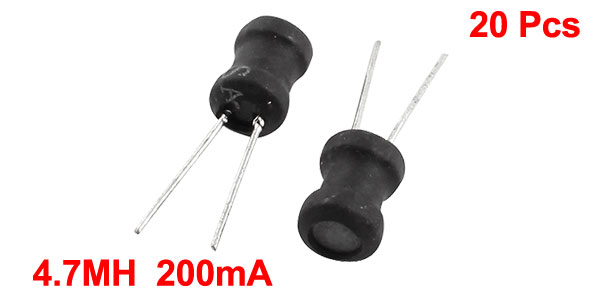 Product Name Radial Inductor Inductance 4.7mH Rating Current 200mA Tolerance 10% Body Size 6 x 8mm / 0.24" x 0.31"(D*H) Pin Size 0.55 x 14mm/ 0.22" x 0.55"(D*L) Lead Distance 2mm / 0.08" Color Black, Silver Tone Weight 21g Package Content 20 Pcs x Radial Inductor - Reviews